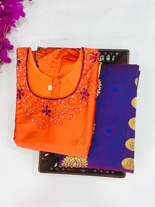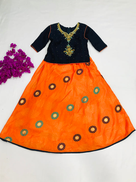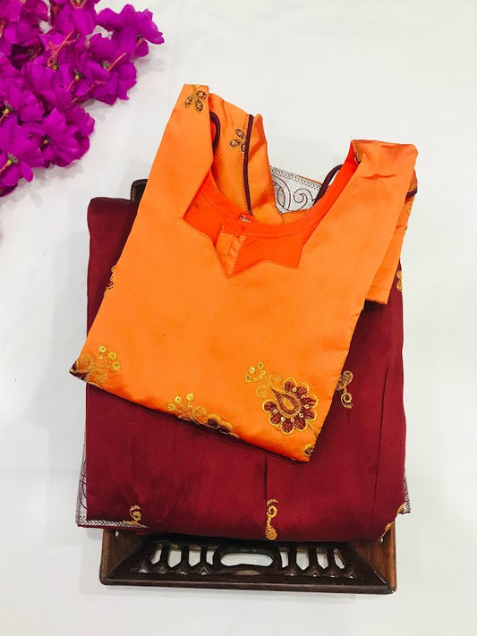 Beautiful Orange Colored Langa Set With Embroidery Work For Kids