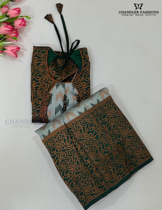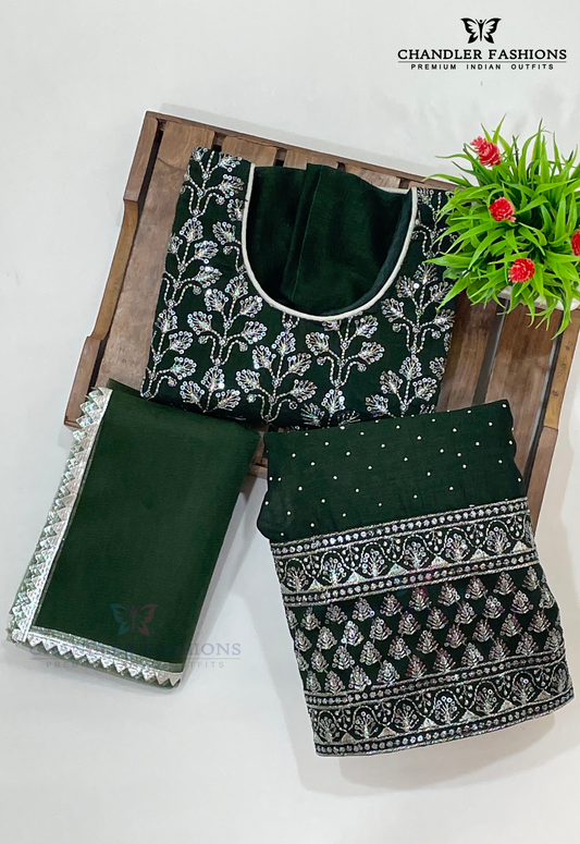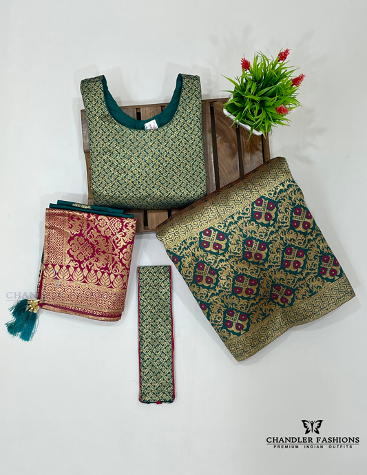 Alluring Dark Green Colored Silk Choli Sets With Stone Work For Girls