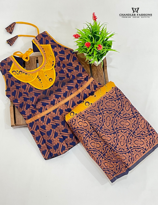 Charming Blue Color Silk Langa Set With Designer Zari Work For Girls