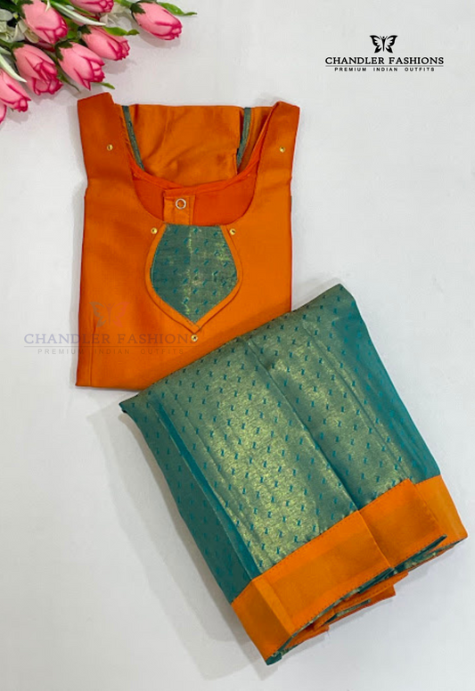 Elegant Orange Color Silk Langa Sets With Zari Work For Girls