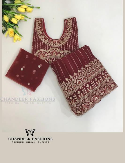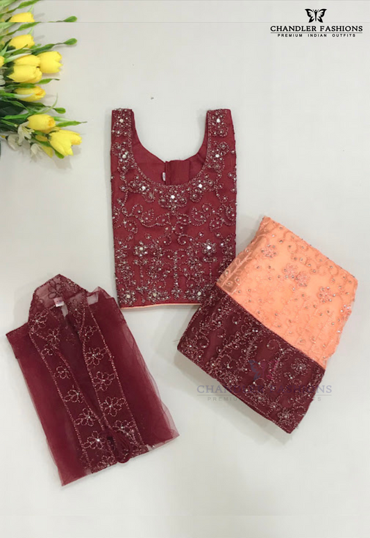 Alluring Dark Maroon Color Georgette With Embroidery And Sequins Work Girls Choli Sets