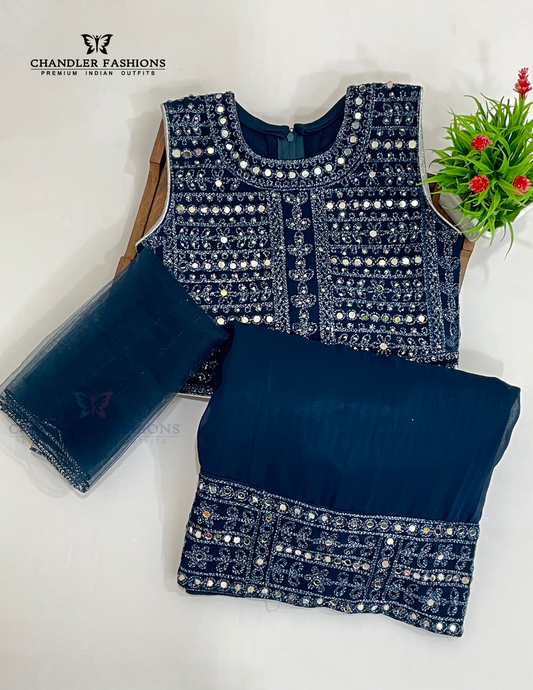 Alluring Teal Blue Color Georgette With Embroidery And Mirror Work Girls Choli Sets