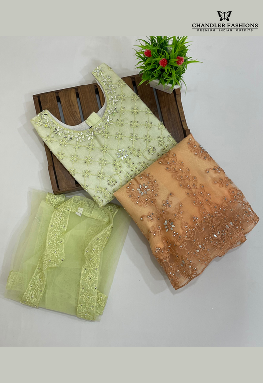 Elegant Pista Green Color Georgette Choli Sets For Girls