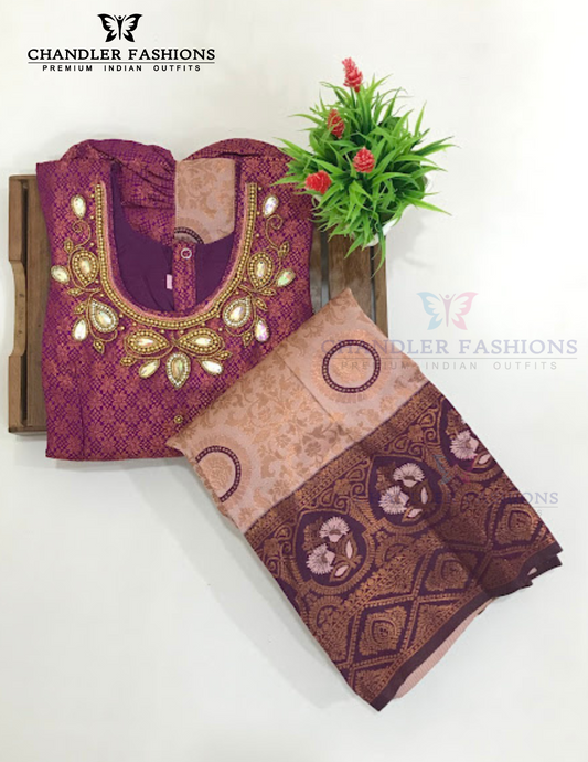 Elegant Dark Pink Colored Silk Choli Sets With Stone Work For Girls