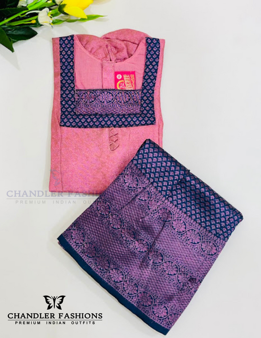 Stunning Light Pink Colored Silk Langa Sets For Girls
