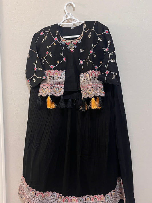 Fantastic Black Colored Georgette Girls Choli Sets With Embroidery Work