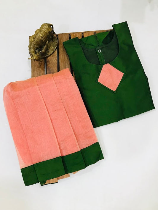 Appealing Green Colored Silk Pattu Langa Sets For Girls