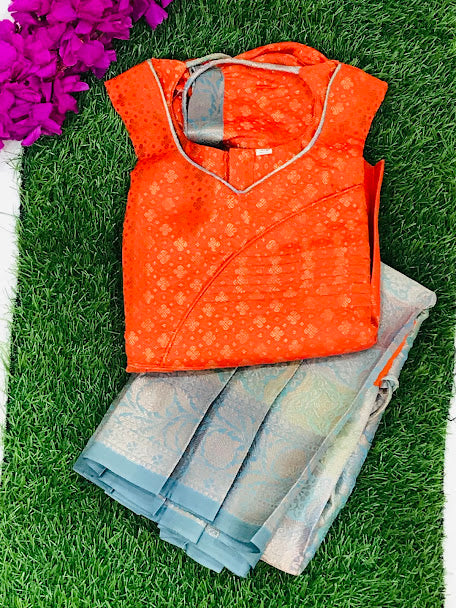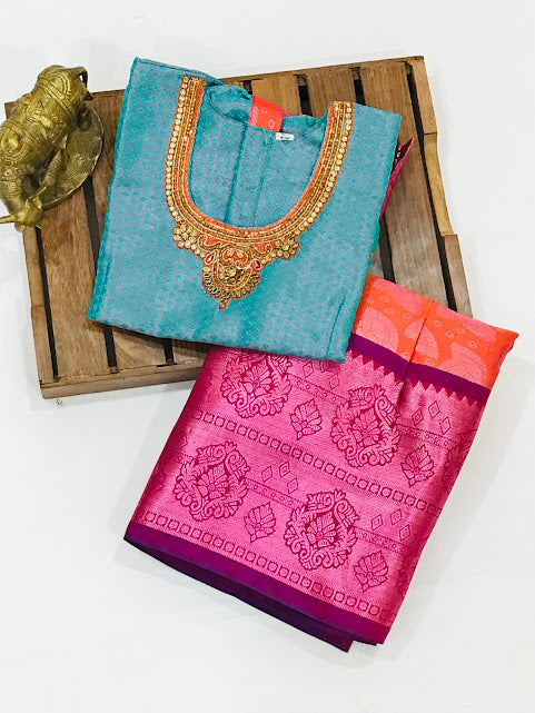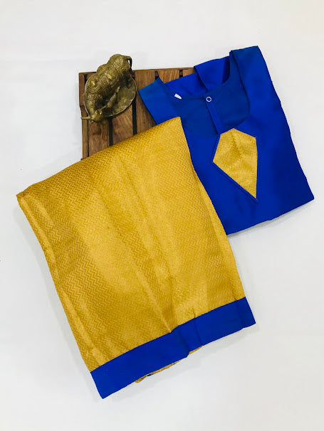 Gorgeous Blue Colored Silk Pattu Langa Sets For Girls
