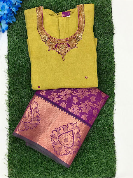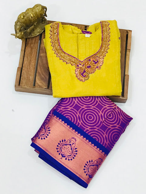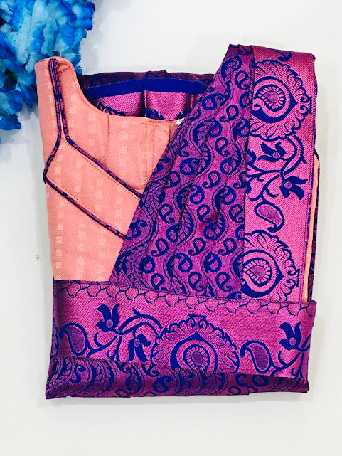 Beautiful Purple Colored Silk Langa Sets With Hip Belt For Girls