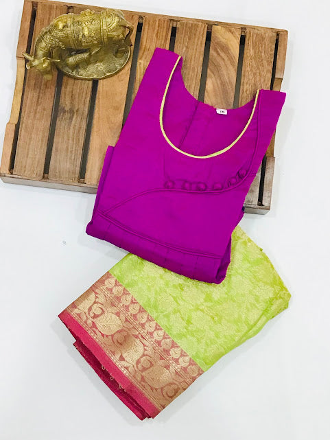 Gorgeous Light Green Colored Designer Silk Langa Sets For Girls