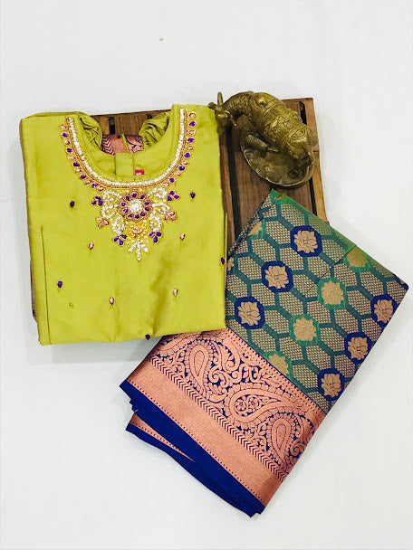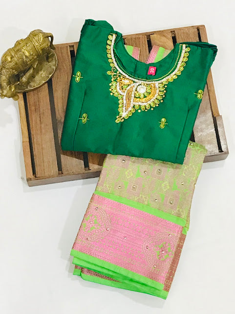 Gorgeous Green Colored Silk Embroidery Work Choli Sets For Girls