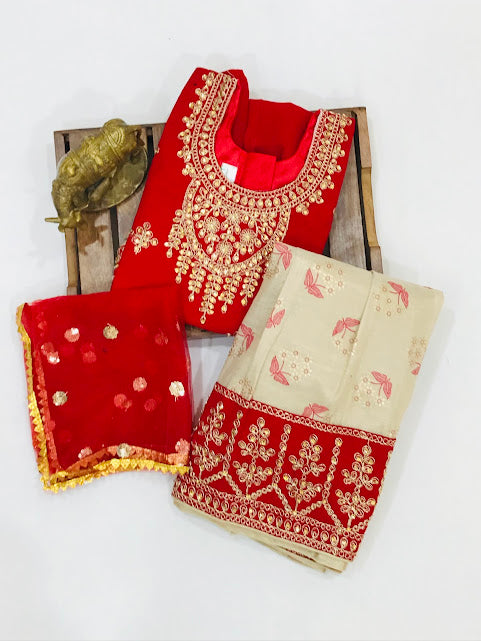 Delightful Red Colored Embroidery And Stone Work Silk Choli Sets For Girls