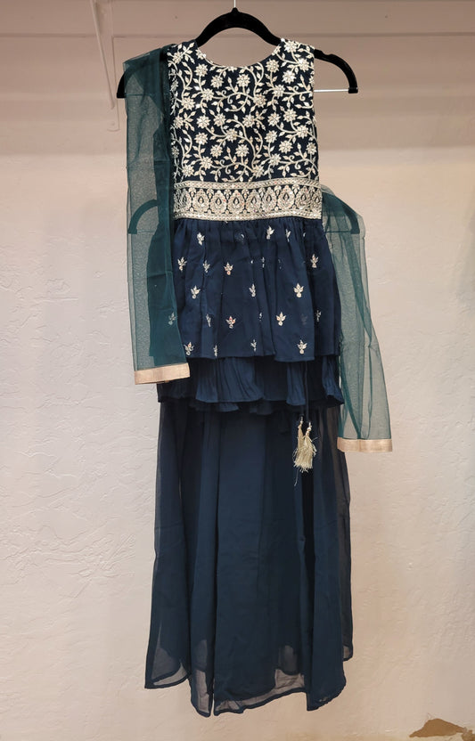 Beautiful Gray Kids Lehenga Choli With Dupatta And Shrug
