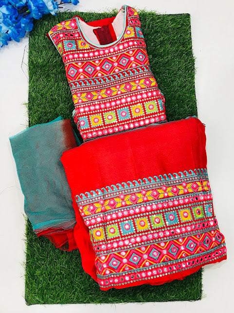 Gorgeous Red Color Festival Wear Mirror Embroidery And Sequins Work Kids Choli Sets