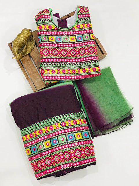 Attractive Violet Colored Embroidery And Sequins Mirror Work Garba Cholis For Girls