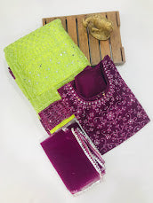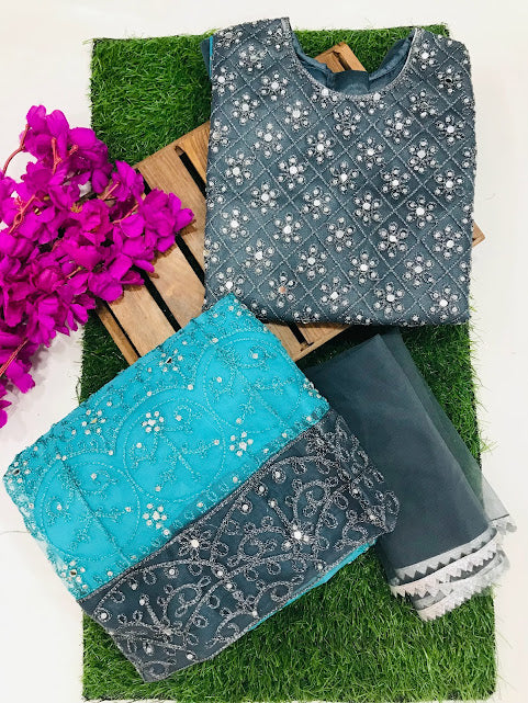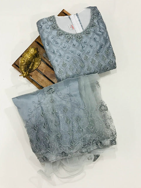 Dazzling Gray Colored Net Embroidery And Sequins Work Girl Choli Sets