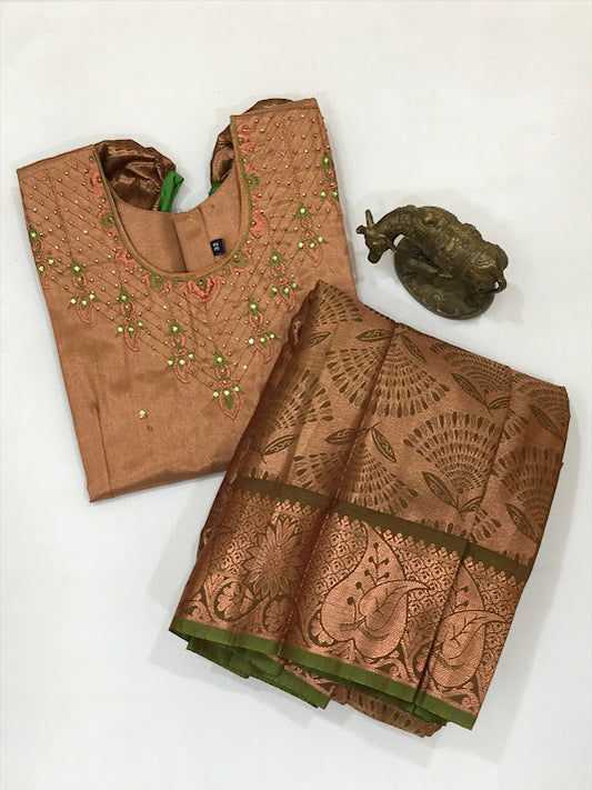 Gorgeous Brown Color Embroidered Work Silk Langa Set For Girls