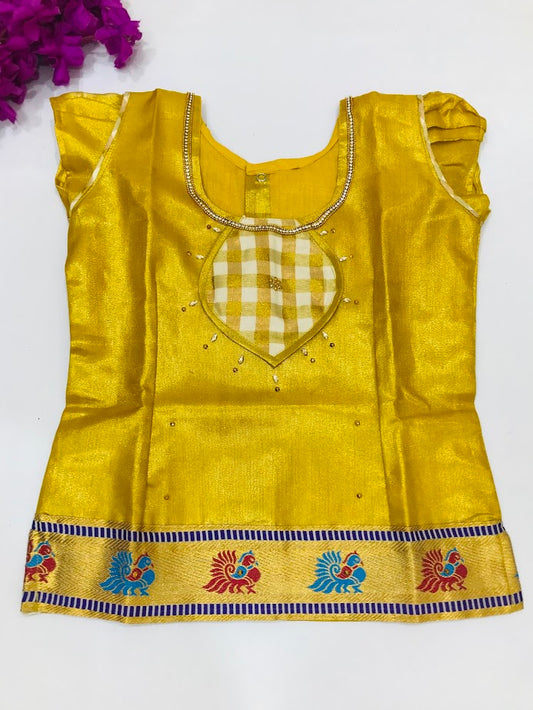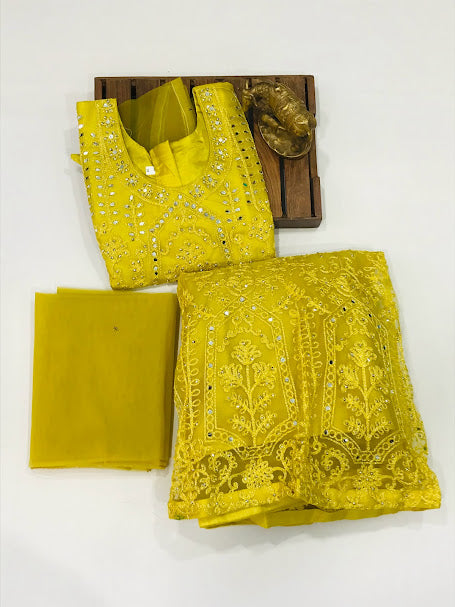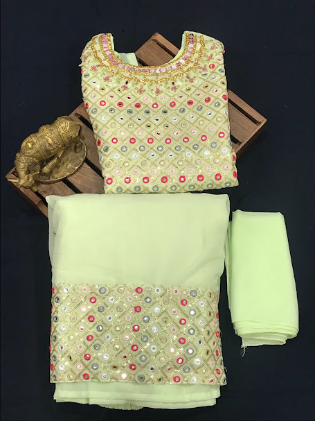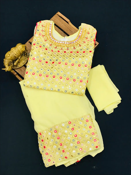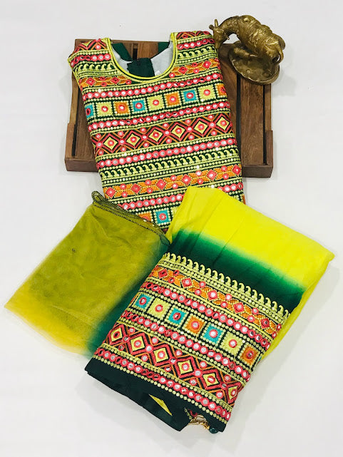 Dazzling Yellow Color Mirror Embroidery Sequins Work Choli Set For Girls