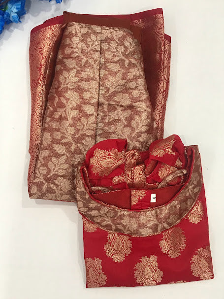 Gorgeous Maroon Color Floral Design Silk Langa Set For Girls
