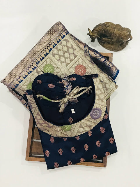 Stunning Royal Blue Color Zari With Lace Work Silk Gown For Kids