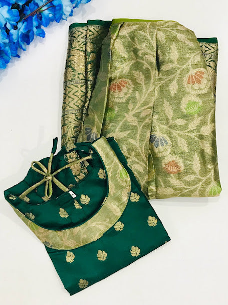 Gorgeous Green Color Zari Work With Silk Gown For Kids