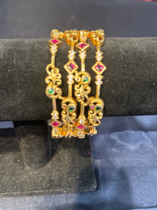 Attractive Green and Red Stones Gold Plated Antique Design Bangles For Women