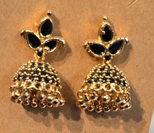 Gorgeous Black Stone Flower Shaped Gold Plated Earrings