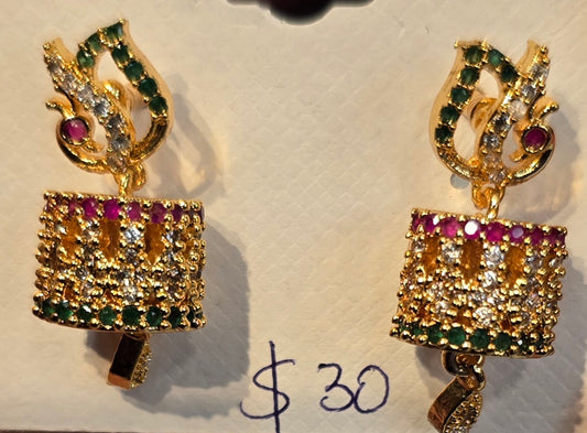 Alluring Multicolor Stones Gold Plated Earrings