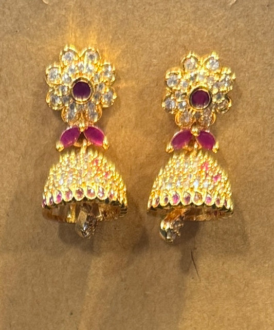 Stunning Dark Pink Color Stones With Gold Plated Earrings