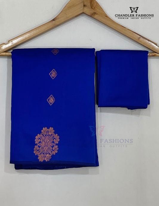 Charming Blue Color Pure Kanchi Silk With Gold Zari And Traditional Pallu Design With Floral Matifs Work Saree For Women - SILKMARK CERTIFIED