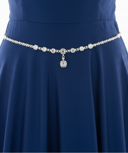 Beautiful American Diamond Stone Worked Silver Colored Hip Chain