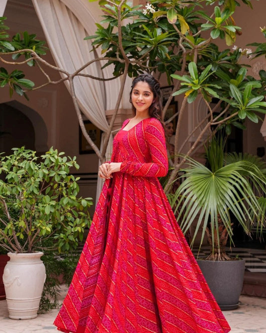 Elegant Printed Rani Pink Shrug Style Indo Western Gown For Women