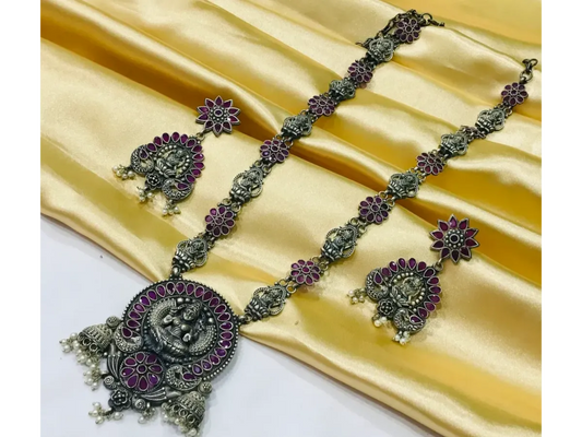 High End Beautiful Lakshmi Pendant Oxidized Long Chain With Earrings Made With Brass And CopperRegular price $113.00 USDRegular priceUnit price per$175.00 USDSale price $113.00 USDSale