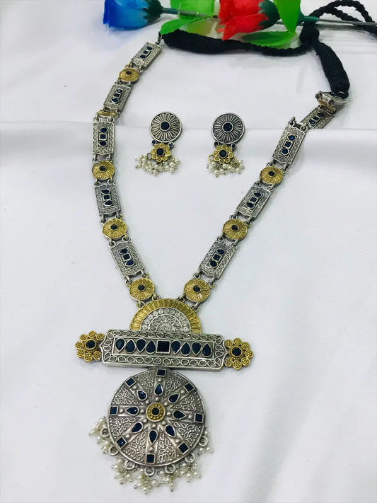 Gorgeous Silver Plated Traditional Long Necklace With Earrings Made With Brass And CopperRegular price $71.99 USDRegular priceUnit price per$100.99 USDSale price $71.99 USDSale
