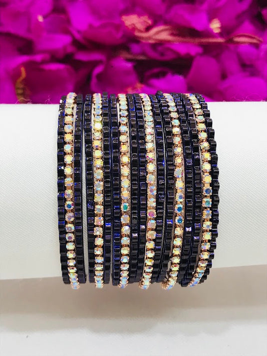 Attractive Dark Blue Colored Designer Fancy Bangles With White Stones