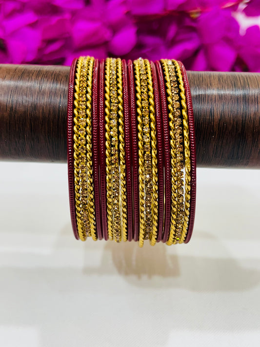 Exquisite Maroon Color Smooth Finishing Metal Bangles For Women