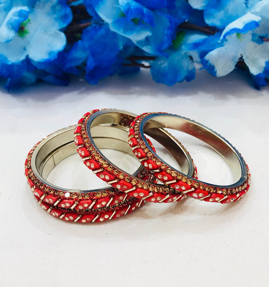 Beautiful Stone Work Red Colored Metal Bangles For Girls