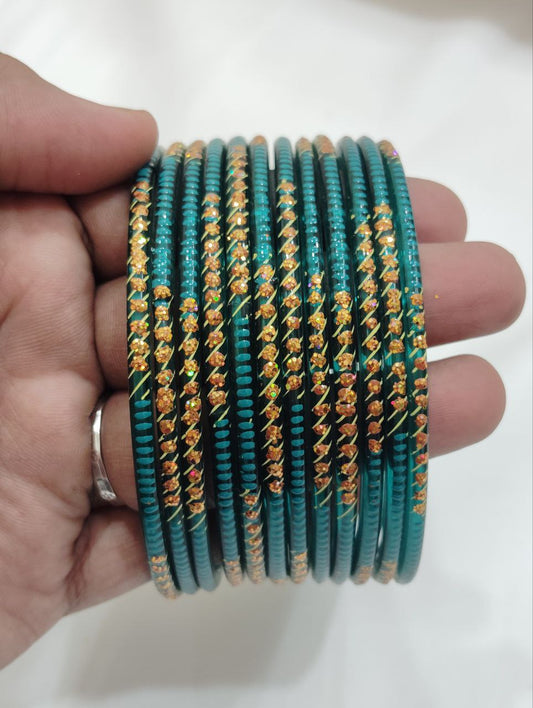 Lovely Teal Green Metal Bangles With White Stone Work For Women