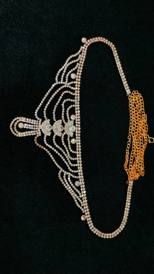 Beautiful American Diamond Stone Worked Silver Colored Hip Chain