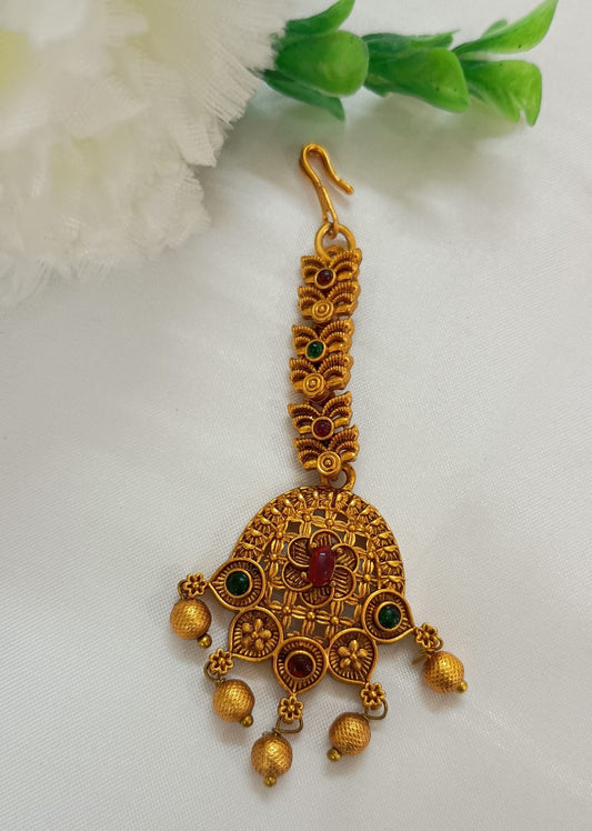 Elegant Antique Gold Tikka With Multicolor