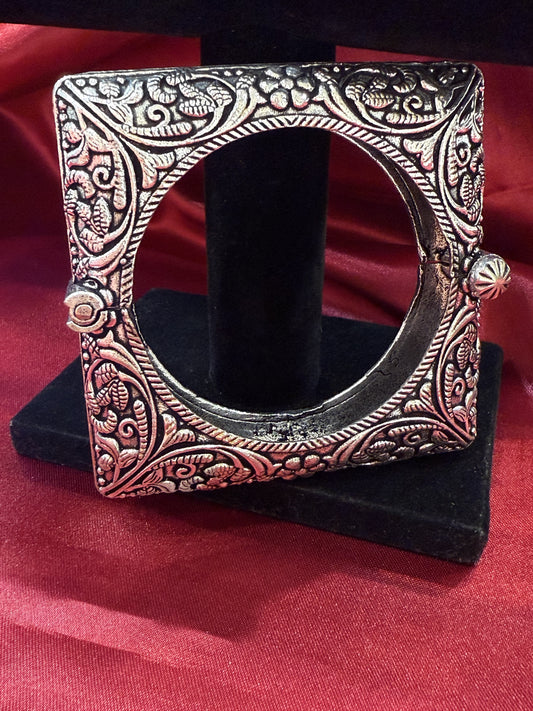 Beautiful Tribal Oxidized Silver Ethnic Open Bridal Square Design Kada Cuff Bracelet