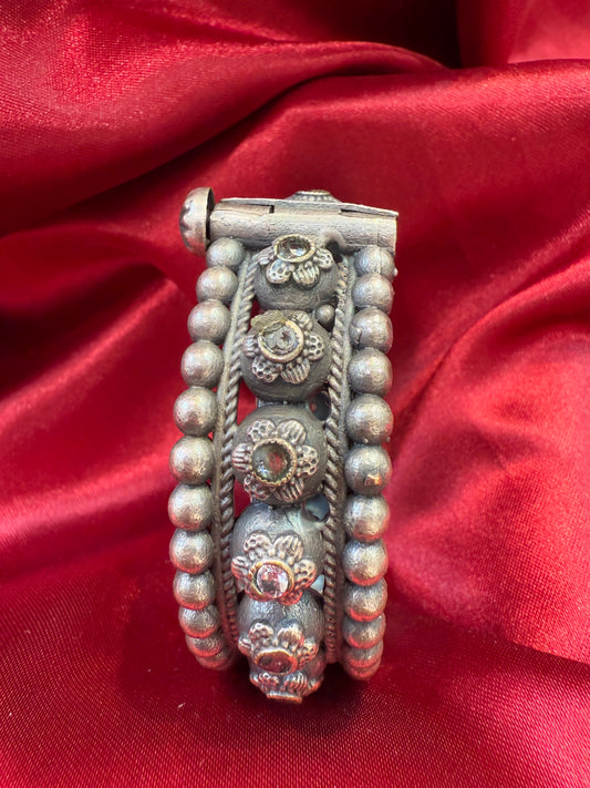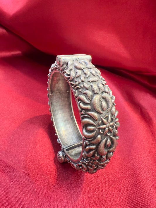 Attractive Tribal Oxidized Silver Ethnic Open Flower Design Kada Cuff Bracelet