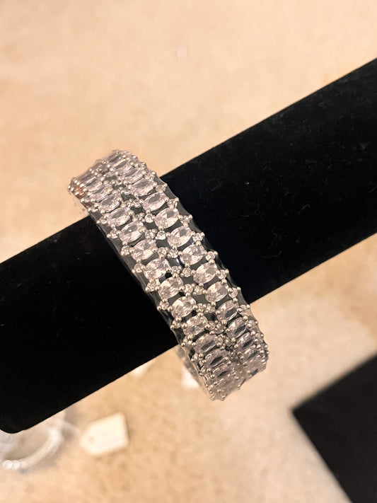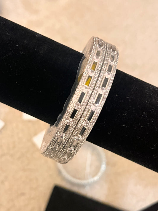 Gorgeous White Color American Diamond Silver Plated Bangles