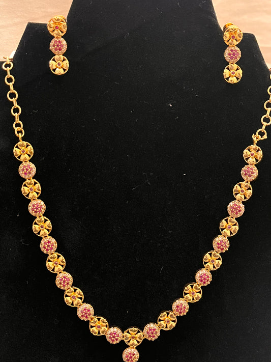 Beautiful Flower Shape Gold Plated And Pink Stone Jewelry Set For Women