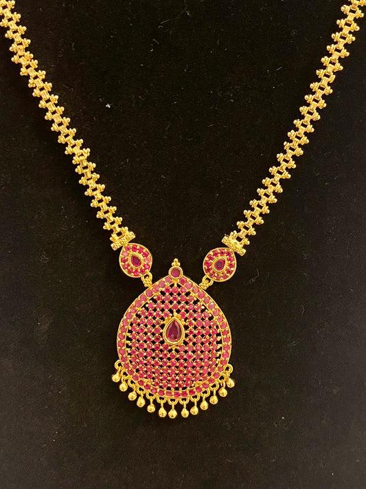 Stunning Gold Plated Premium Ruby And Emerald Stoned Kasu Necklace Set
