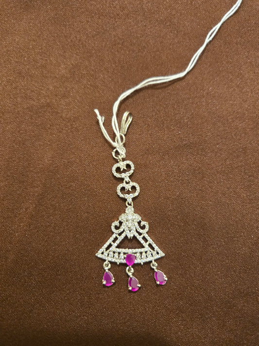 Beautiful Party Wear AD Stone Pink Color Maang Tikka For Women