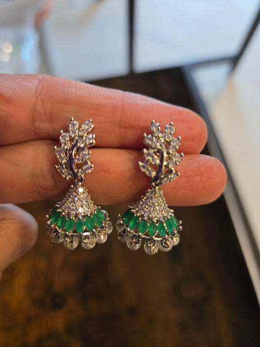 Beautiful American Diamond Green Emerald Stone Jhumka Earrings