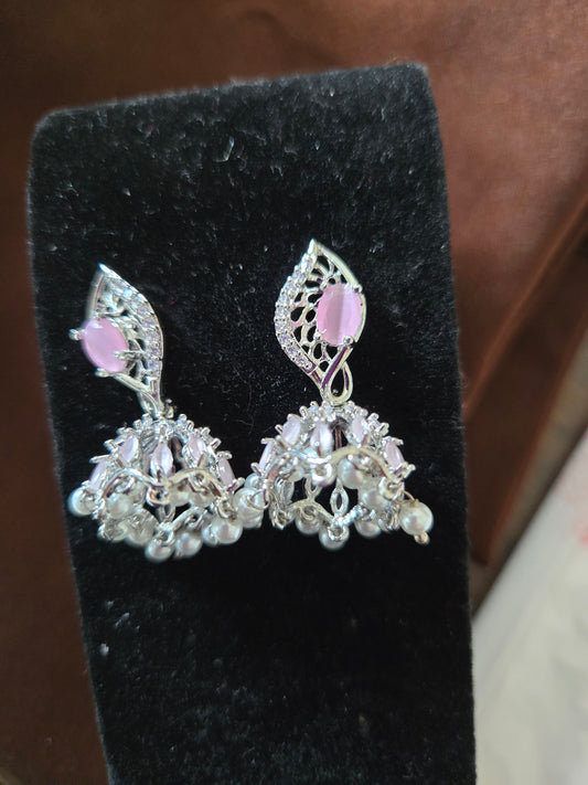Elegant Light Pink Color American Diamond Jhumka Earrings