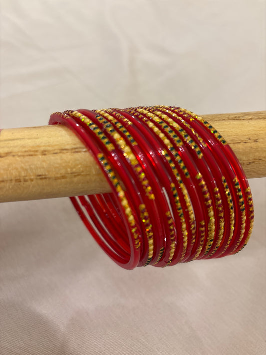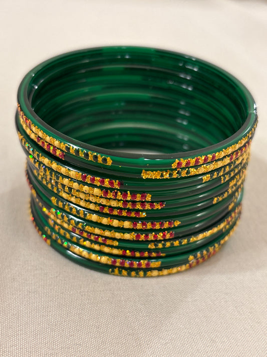 Alluring Antique Gold With Red And Green Stones Studded Bangles For Women