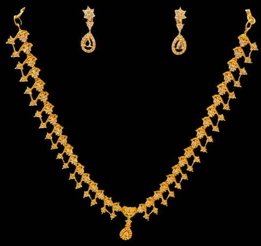 Traditional White Stone Gold Plated Necklace With Earrings Set